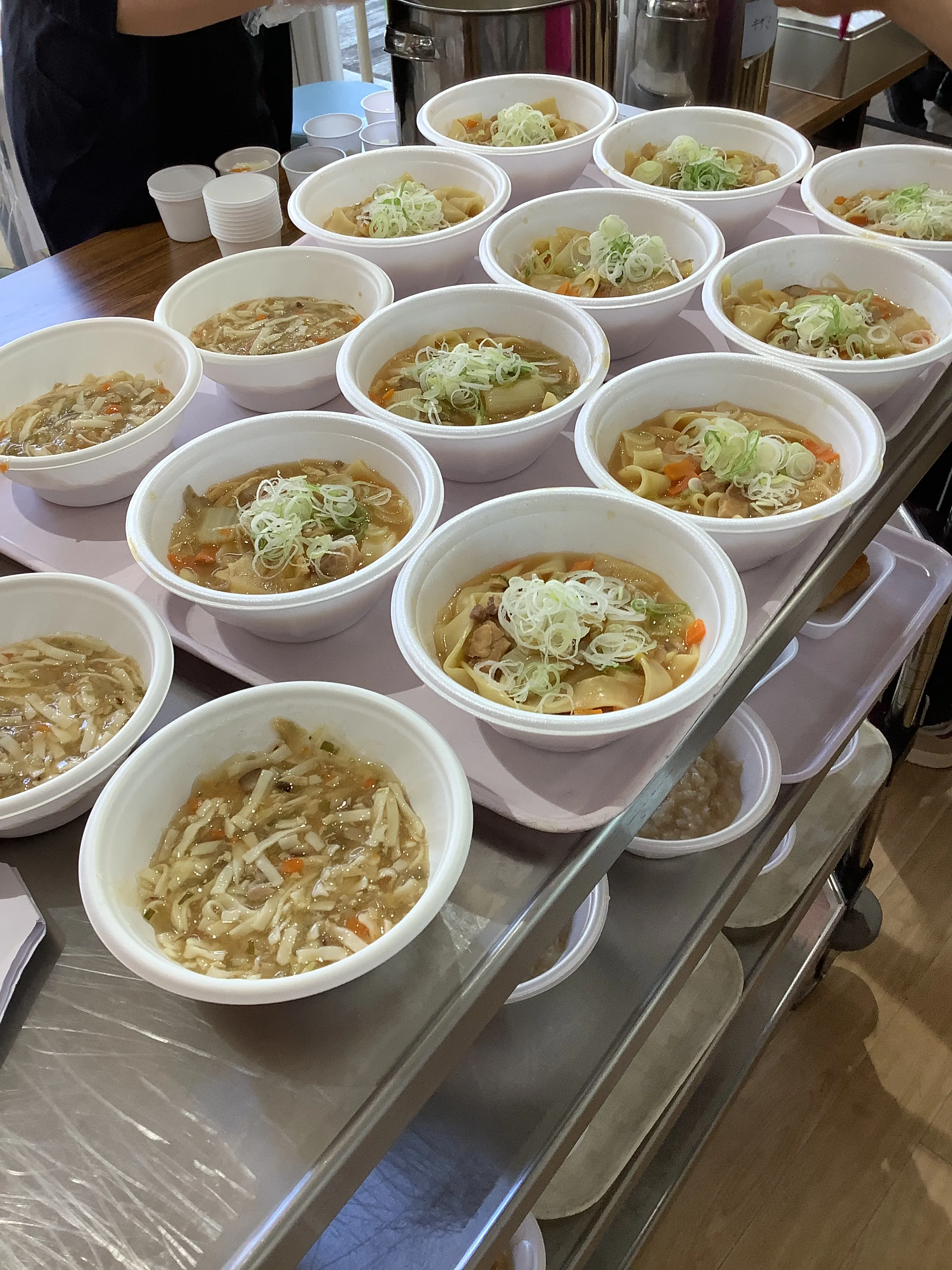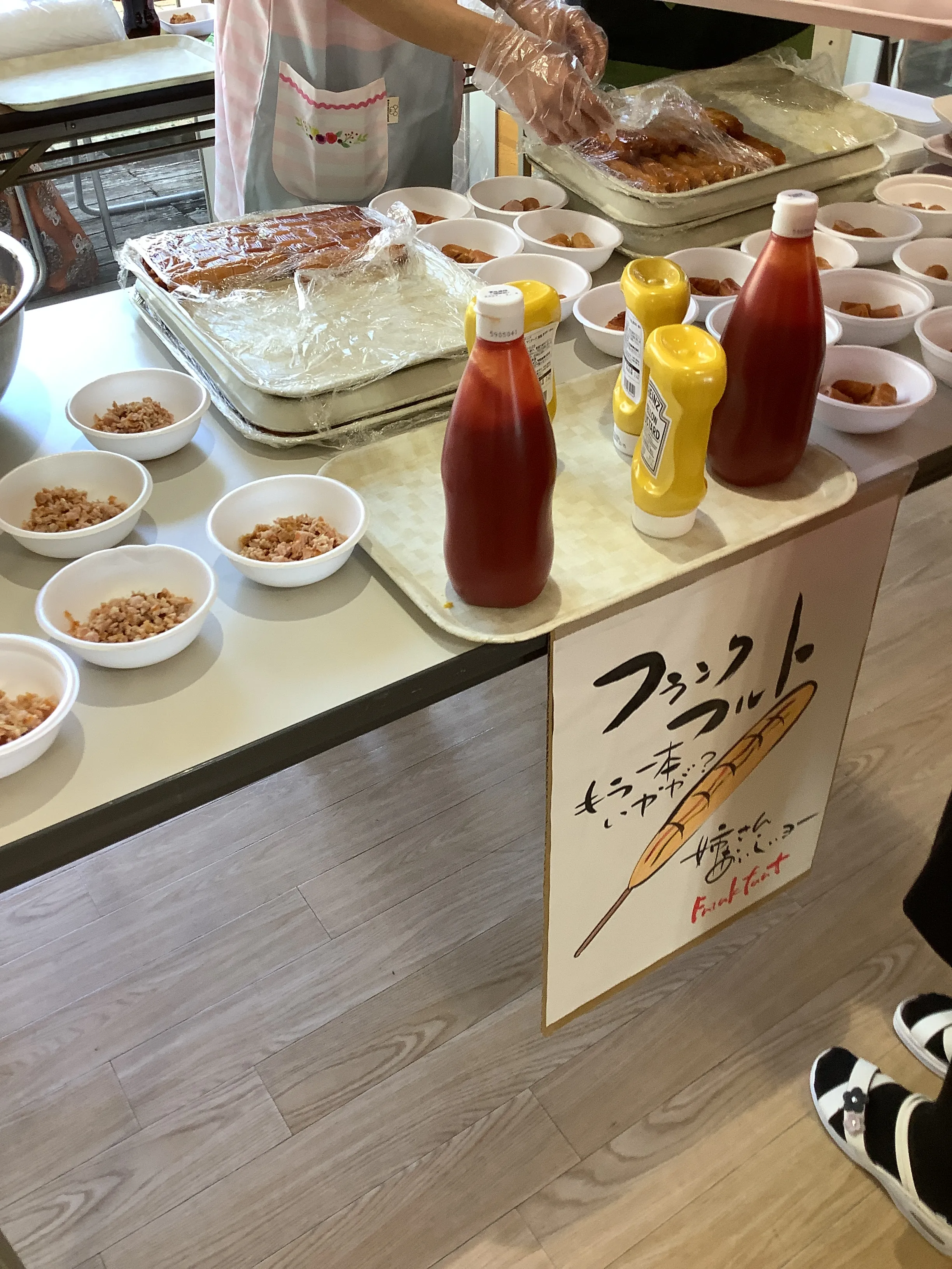 他に、お好み焼き、いなり寿司、からあげ、厚焼き玉子、一口まんじゅう、フランクフルト、杏仁豆腐、ジュース各種などをご用意させていただきお召し上がりいただきました。