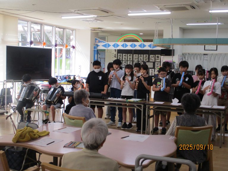 楽器の演奏や合唱、クイズ、質問コーナーなどでご利用者様との交流をして頂きました。