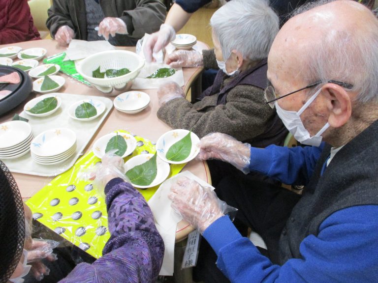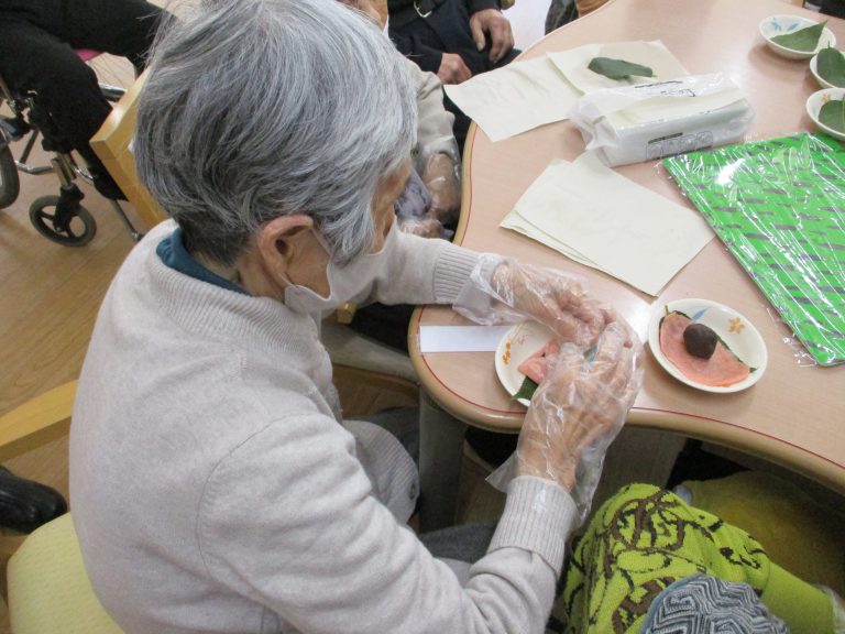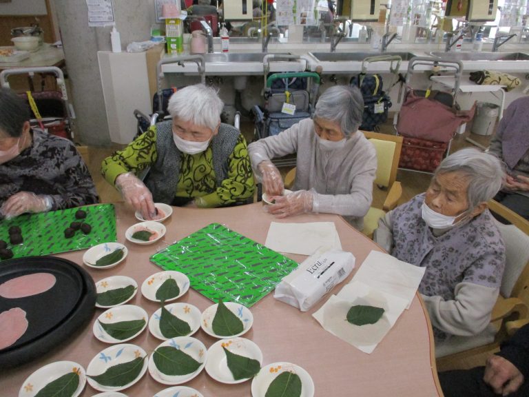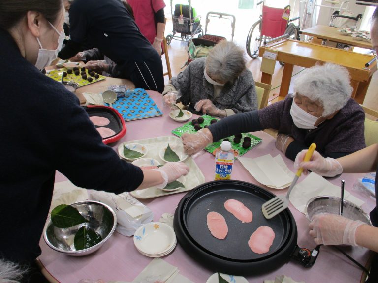 作った桜もちは、3時のおやつにデイ利用の皆様に召し上がって頂きました。