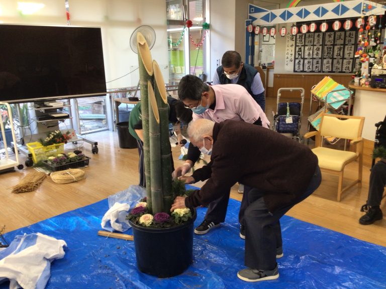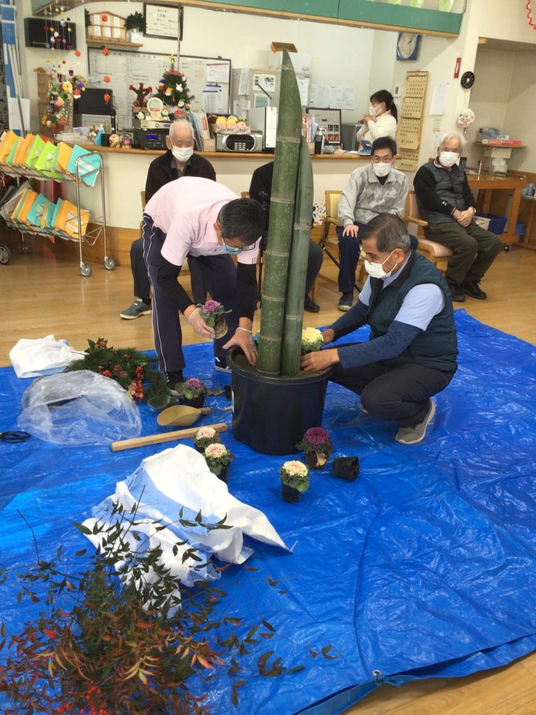 ご利用者様にもお手伝いいただき1時間余りで2基を作成。玄関に飾りました。しばらくの間、なごみ正面玄関に飾りますので是非ご覧いただければ幸いです。