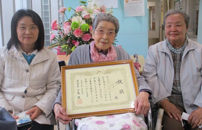 100歳のご長寿に際し、御本人様、ご家族様にあらためてお祝い申し上げます。