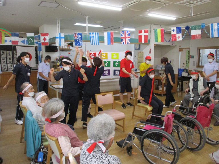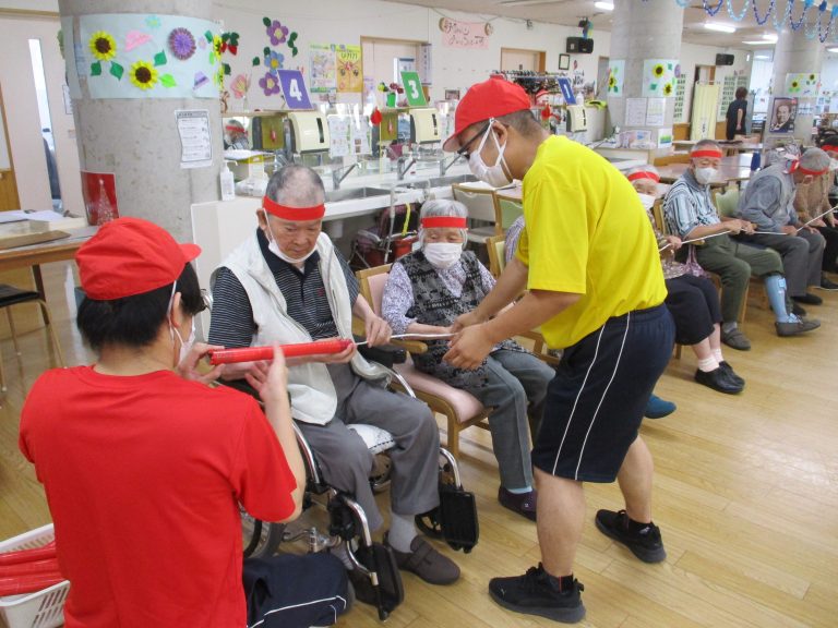 紅組と白組に別れて、皆様と一緒に職員も運動会に参加して楽しみました!
