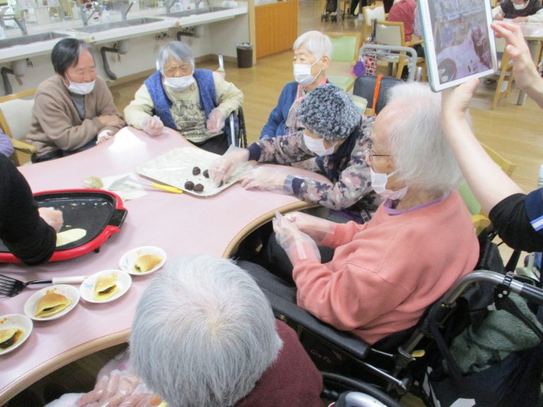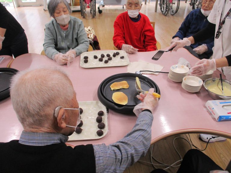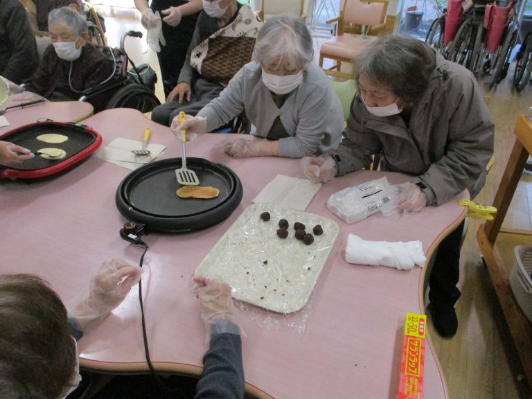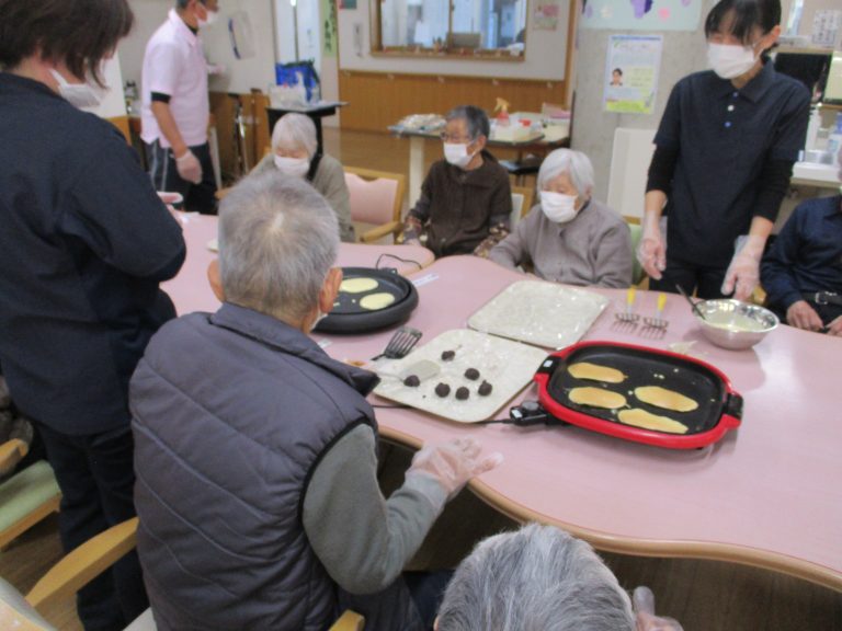 毎回、男性も女性も積極的におやつ作りを行っています。