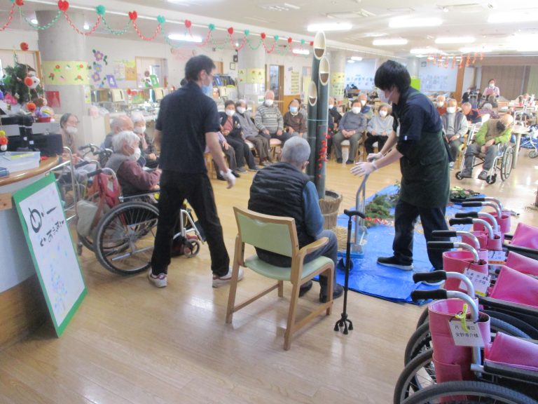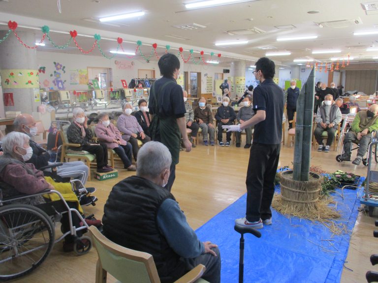 両方とも手作りです。門松は通所リハビリの皆様にお手伝い頂きながら作成しました。