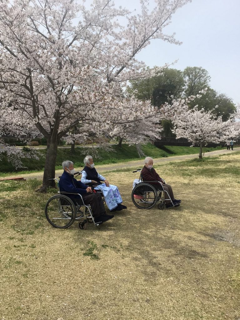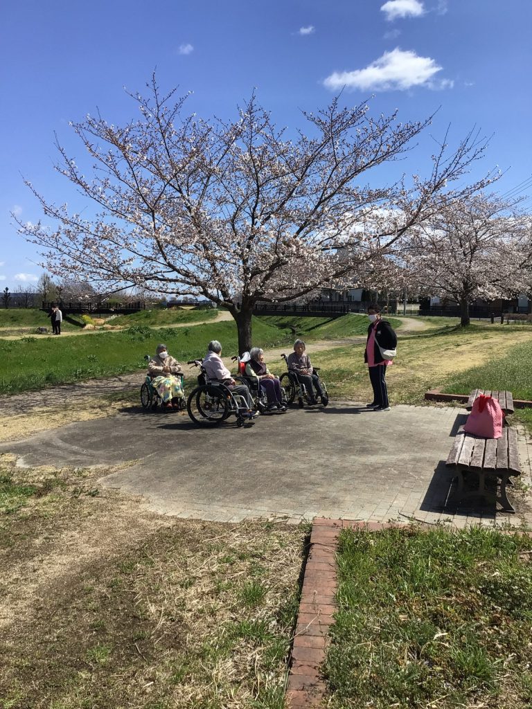 入所棟でバスハイクを実施致しました。桜は満開。菜の花も満開。