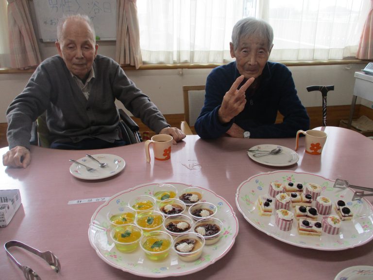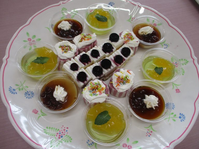 入所棟でおやつバイキングを行いました。フルーツゼリーやケーキなどを用意いたしました。