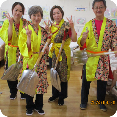 職員心構えは、「いつも笑顔で明るく親切に人の和をもって介護に専心する」「親切な気持ちで心のかよう介護を提供する」ご利用者様とご家族様が笑顔になれるように、日々尽力しております。