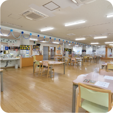入所者定員100名、通所者定員60名の2階建ての広くて明るく綺麗な施設です。