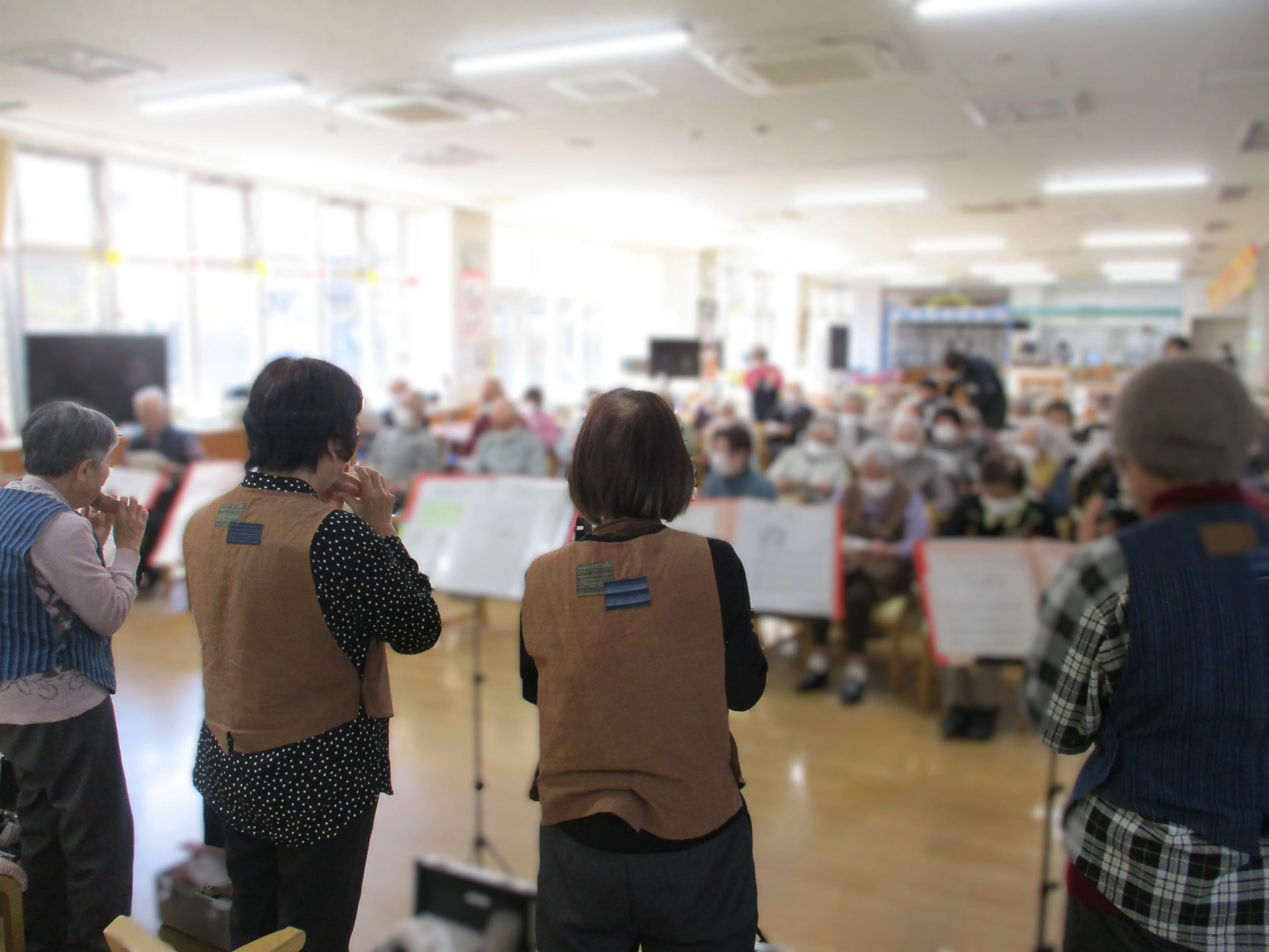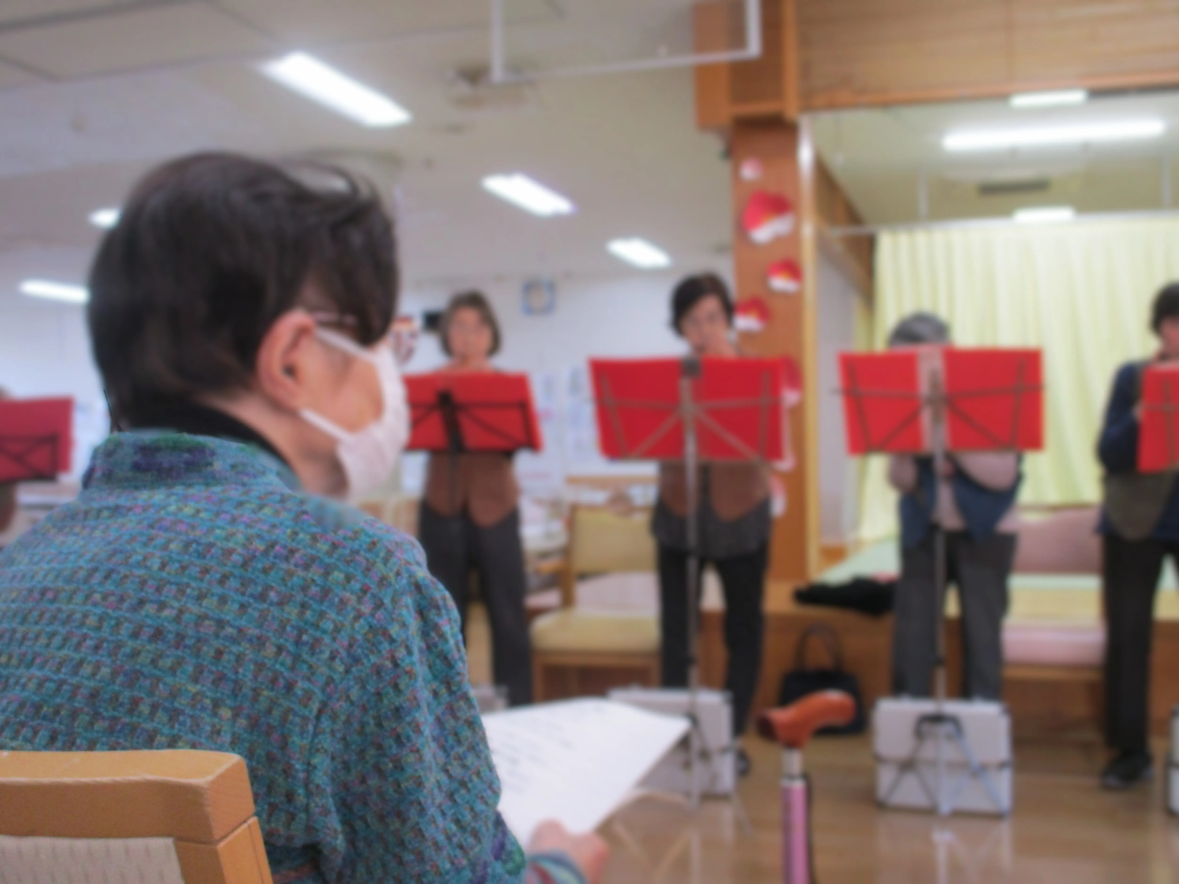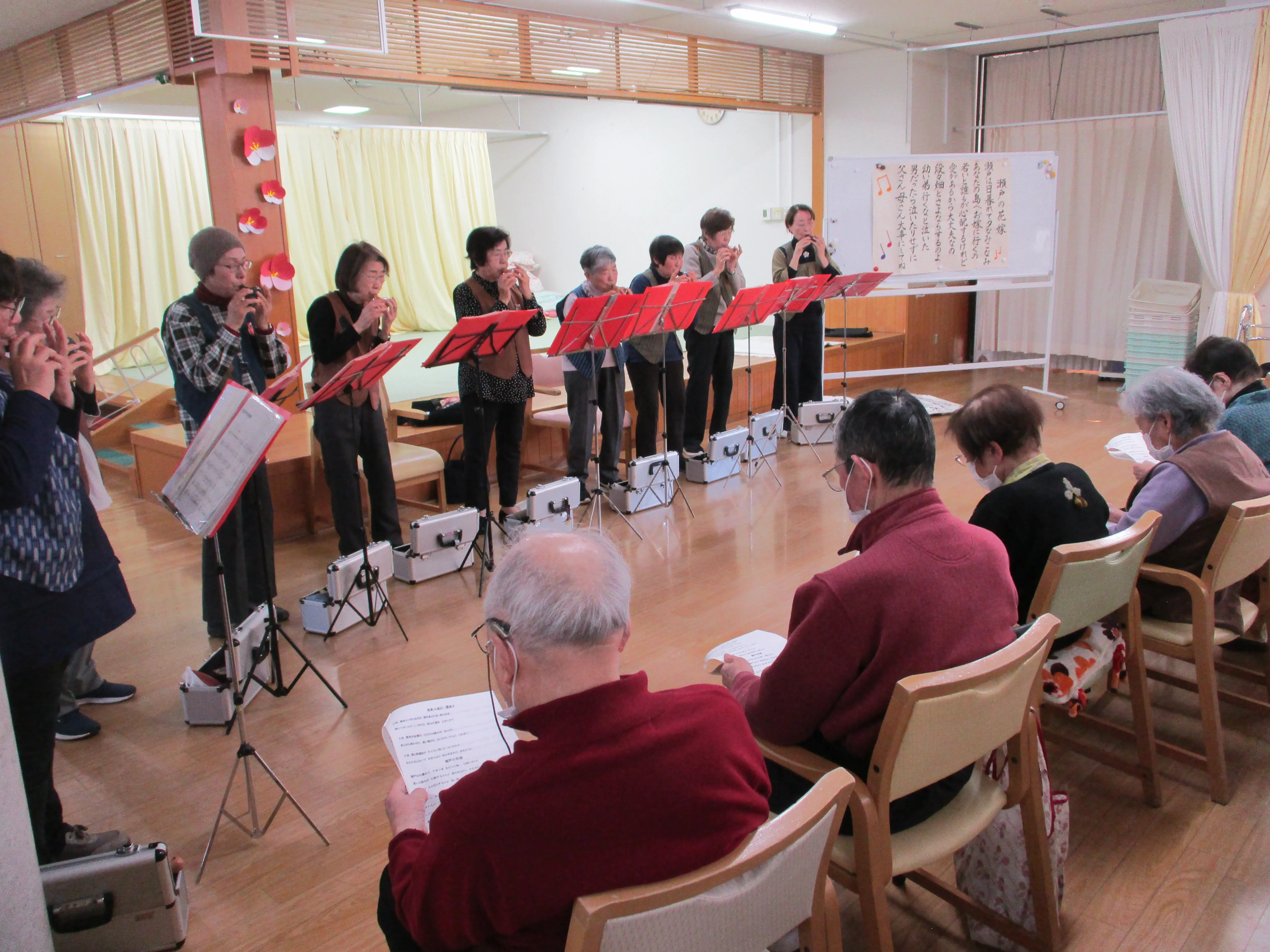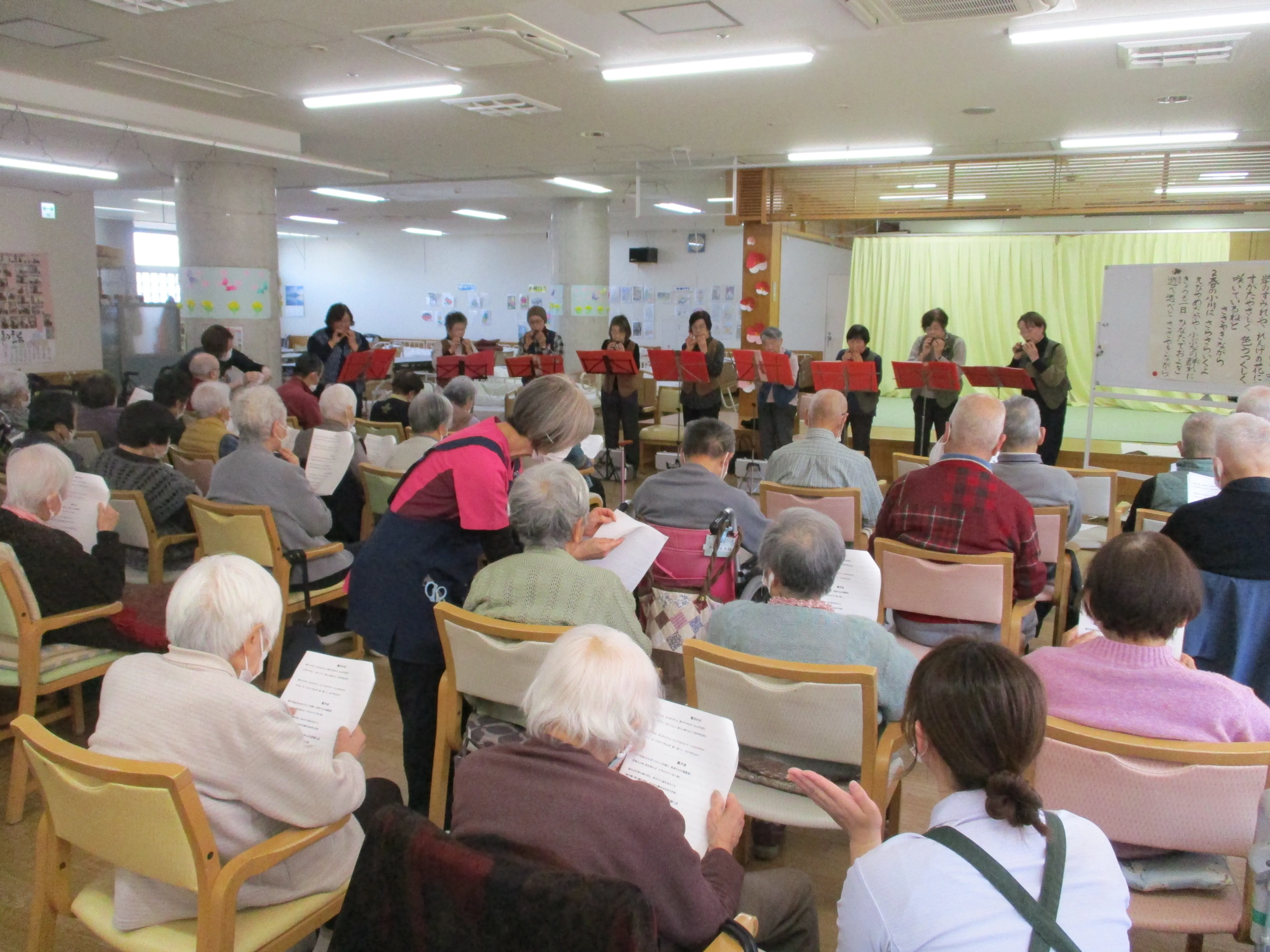 ご利用者様は演奏に合わせて合唱などをして、とても楽しい時間をお過ごしいただきました♪