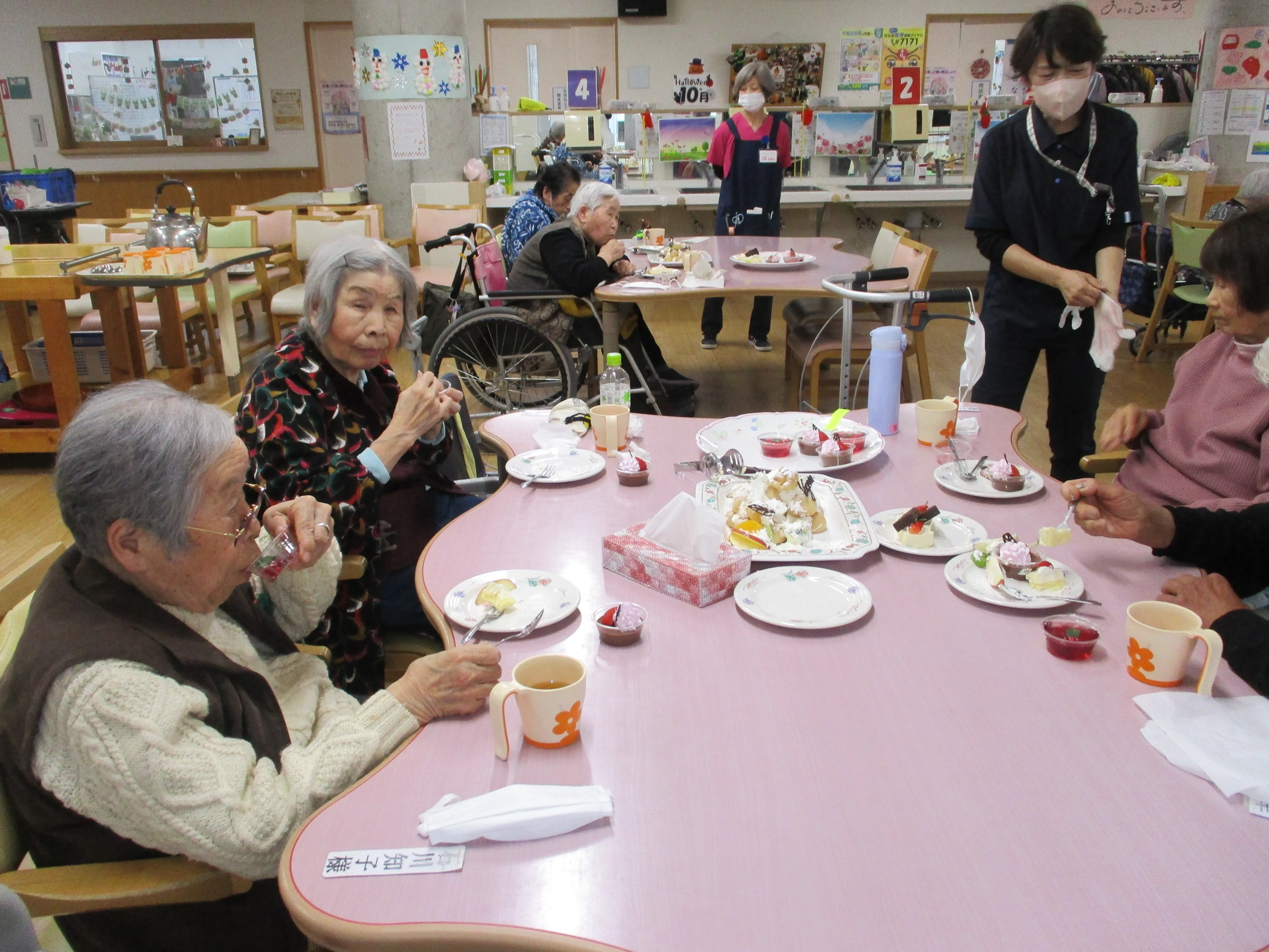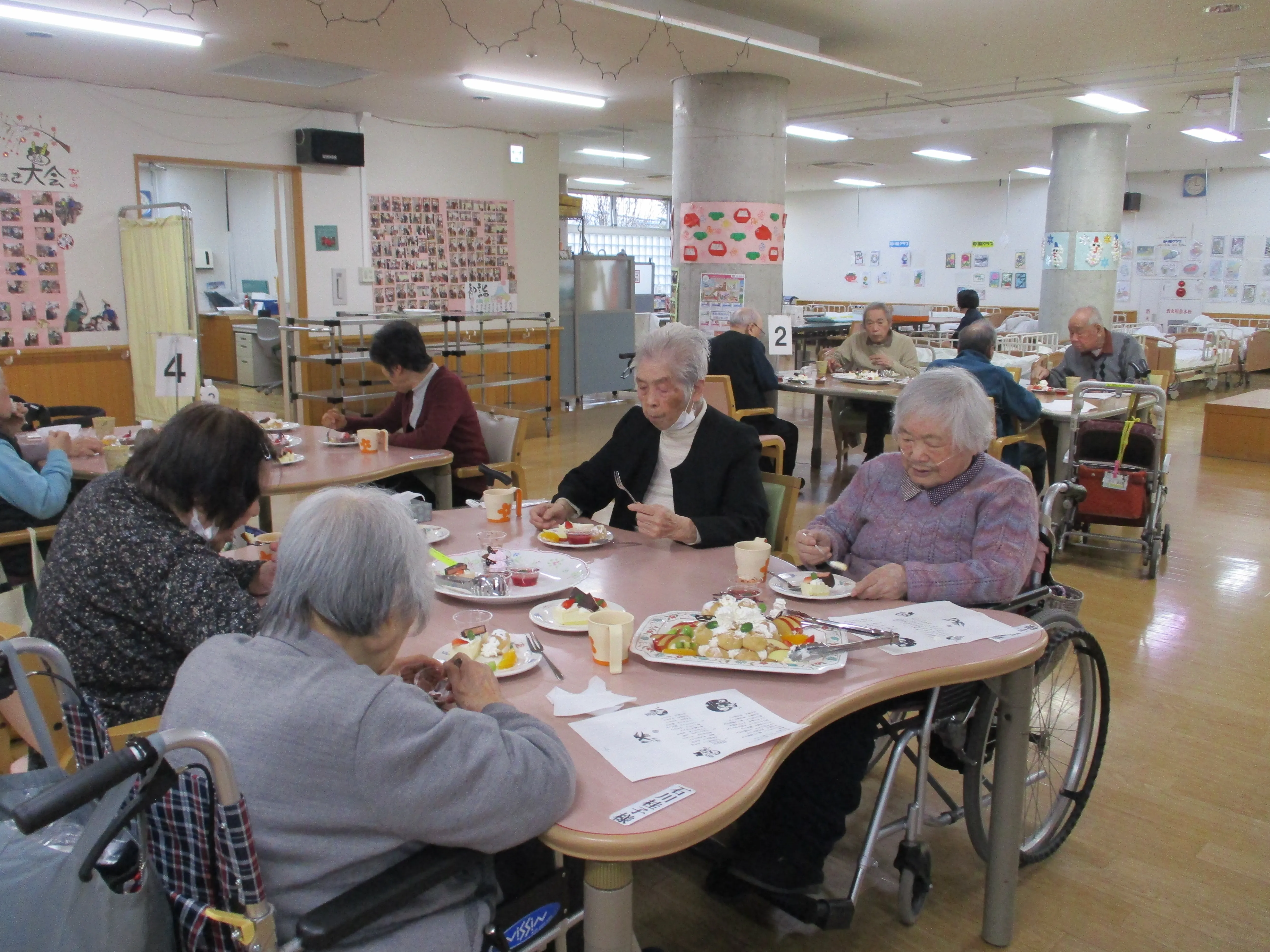 本日は通所リハビリのイベントで、おやつバイキングとボランティアによる演奏会を行いました。