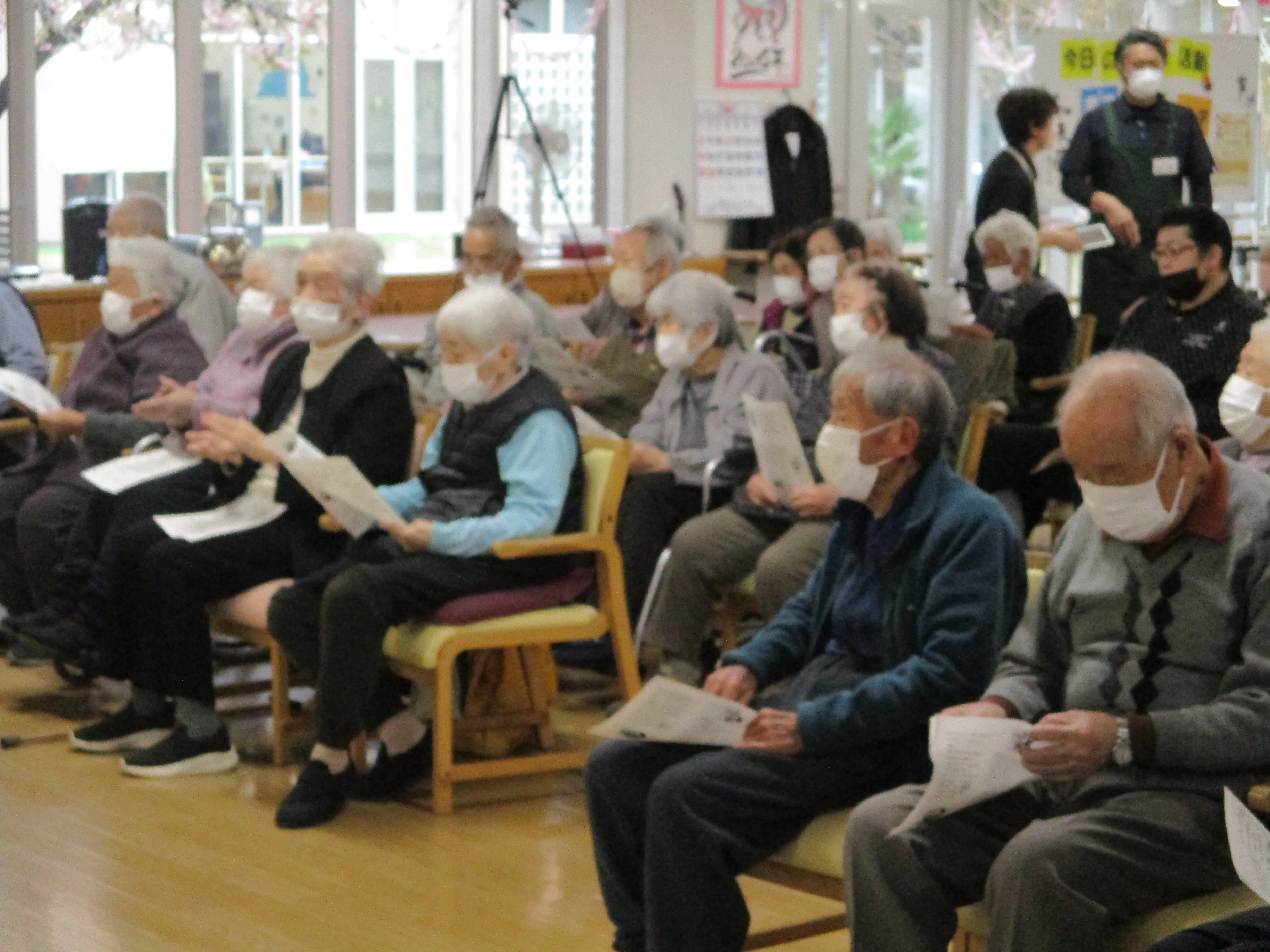 歌謡曲や童謡などご利用者様も一緒に口ずさんで楽しいひと時をお過ごしいただきました。