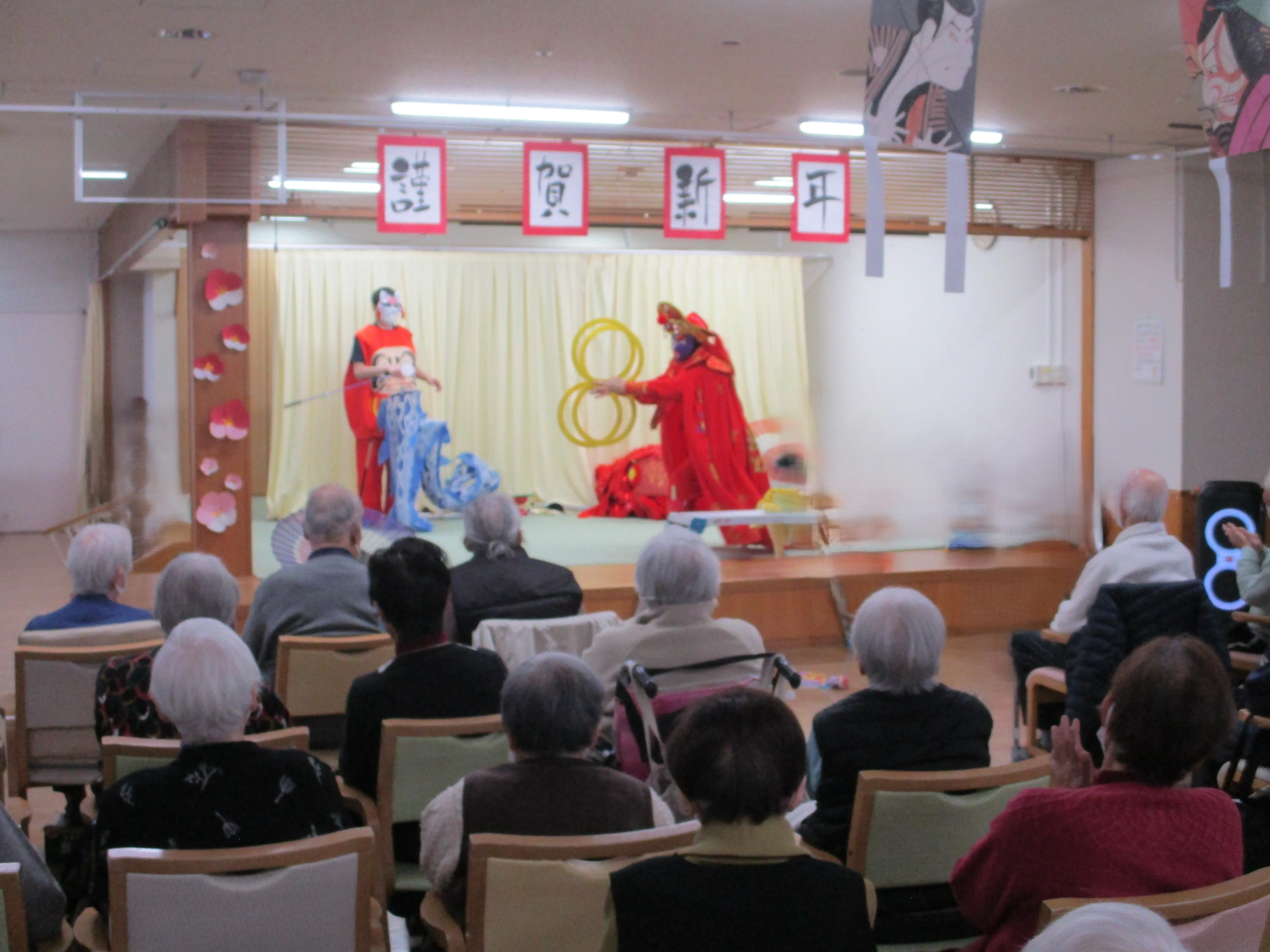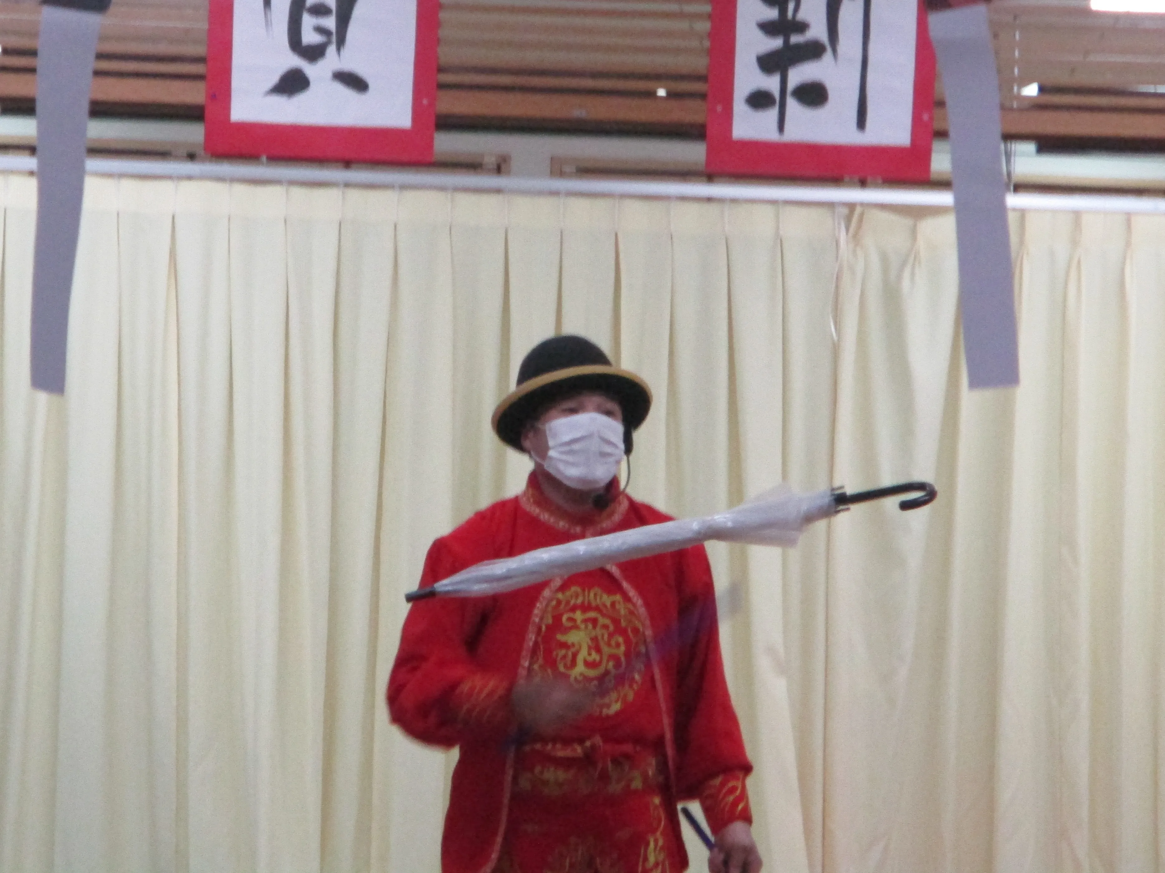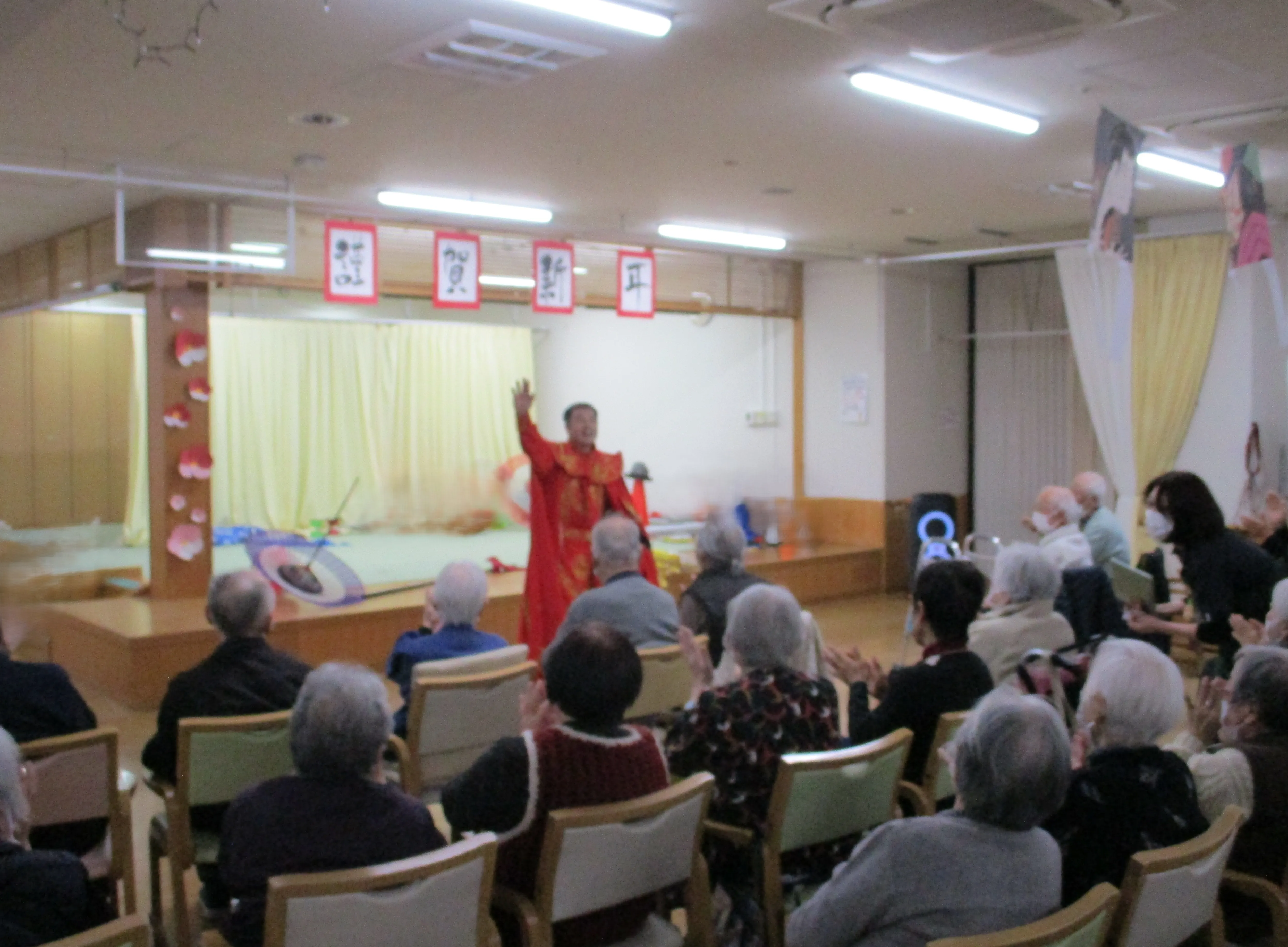 大道芸人のそうだんべさん(なごみ職員)の新春ショーをお楽しみいただきました。