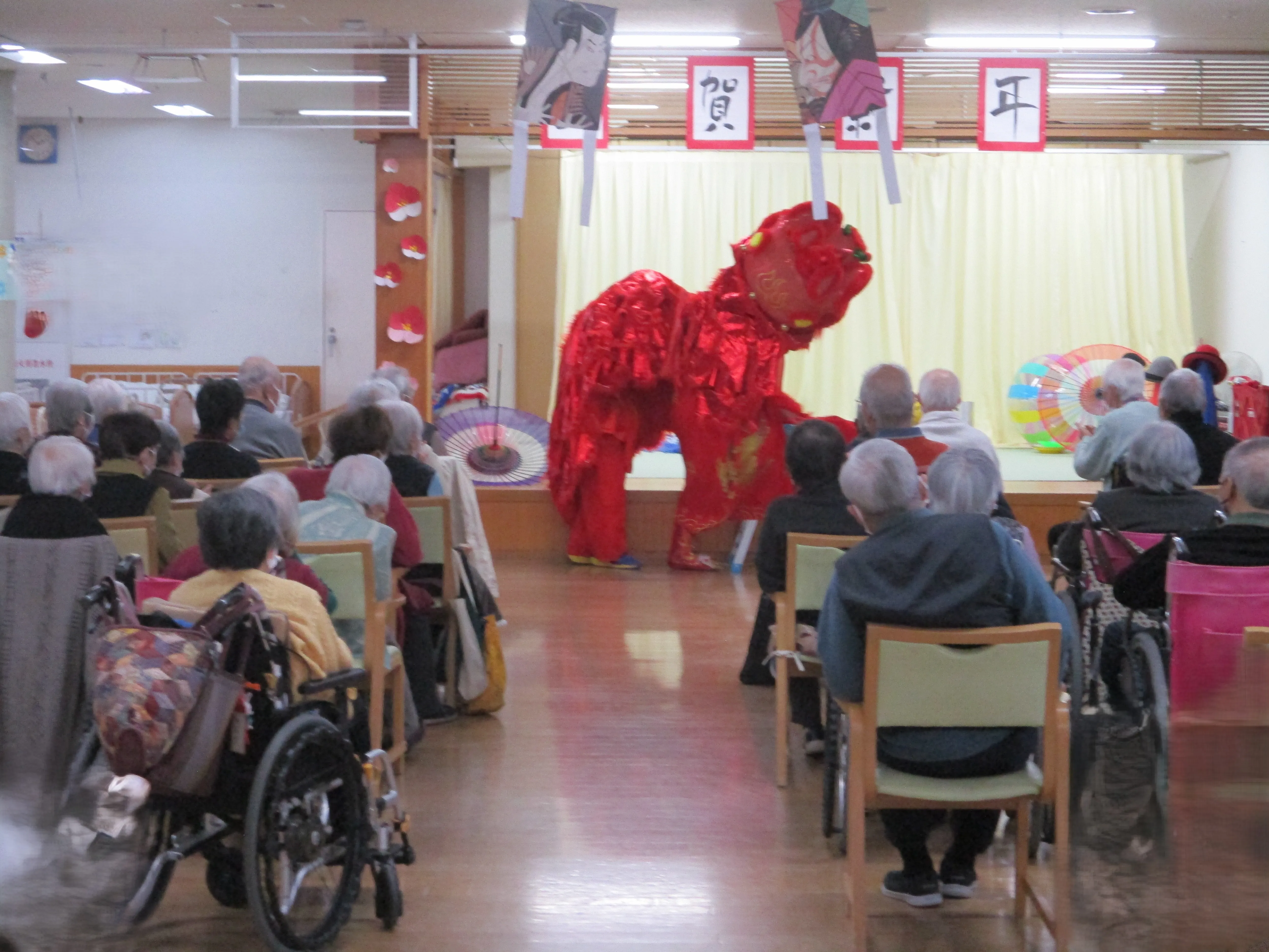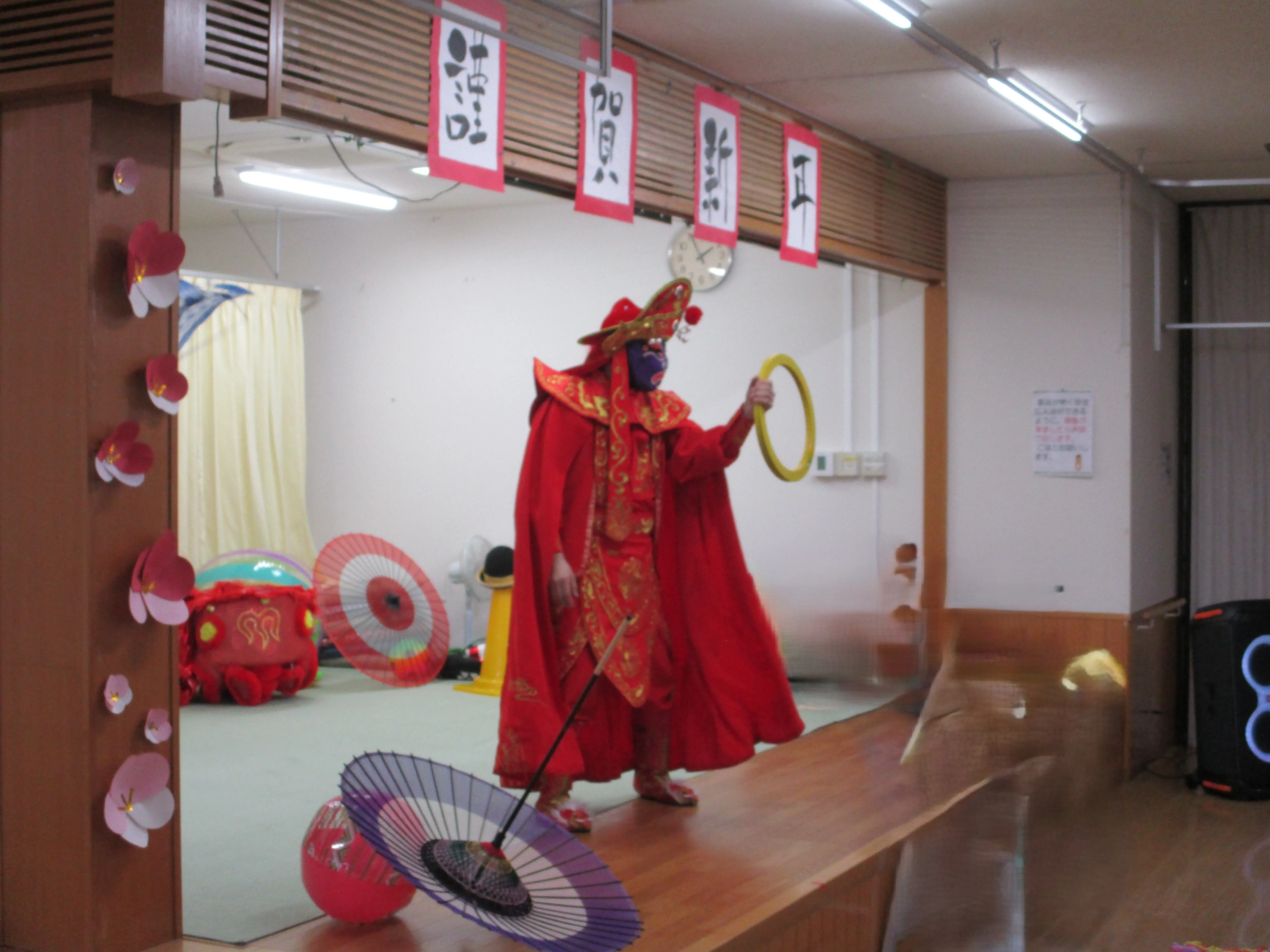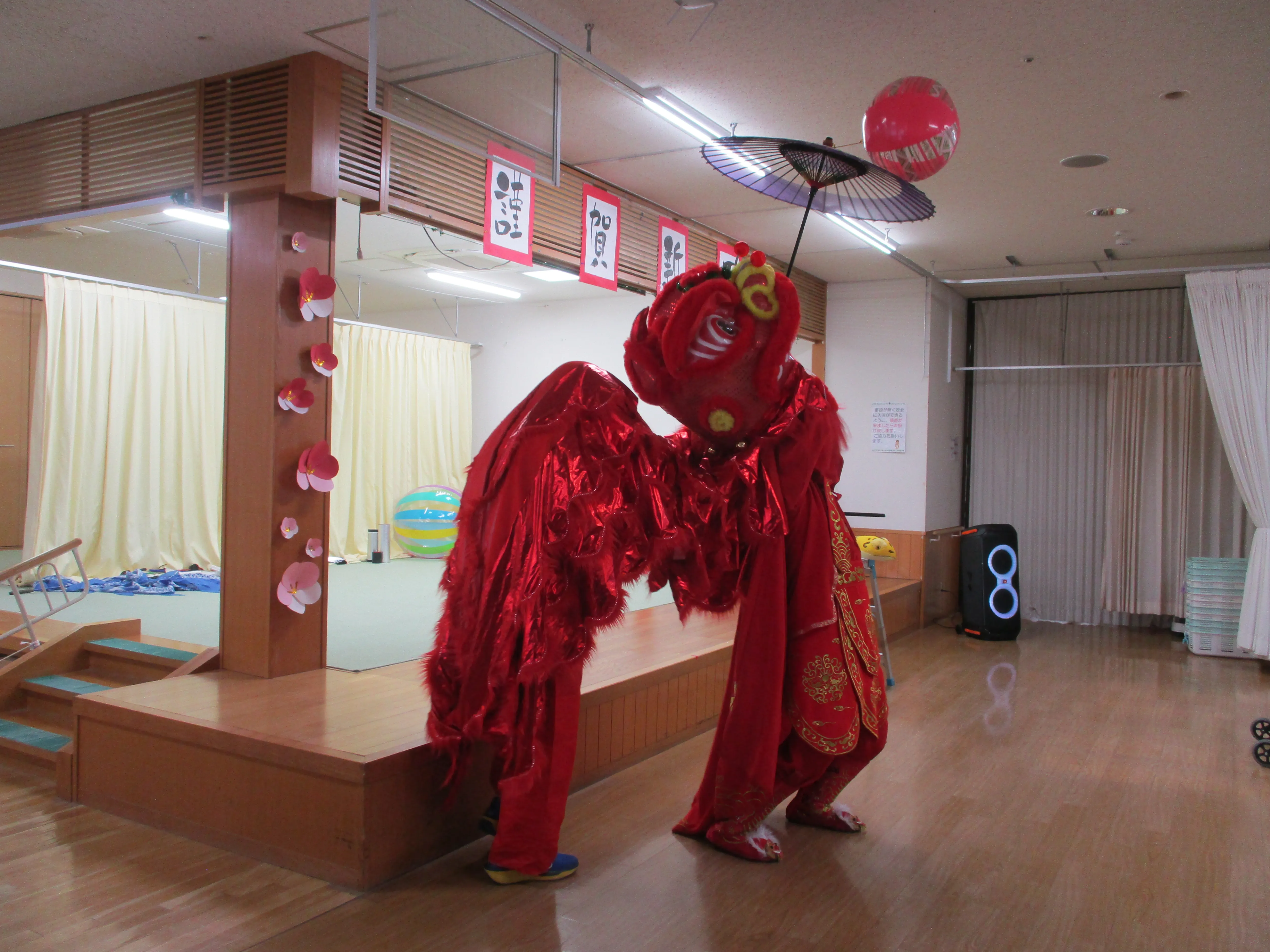 通所リハビリで新春獅子舞&変面&大道芸ショーを行いました。