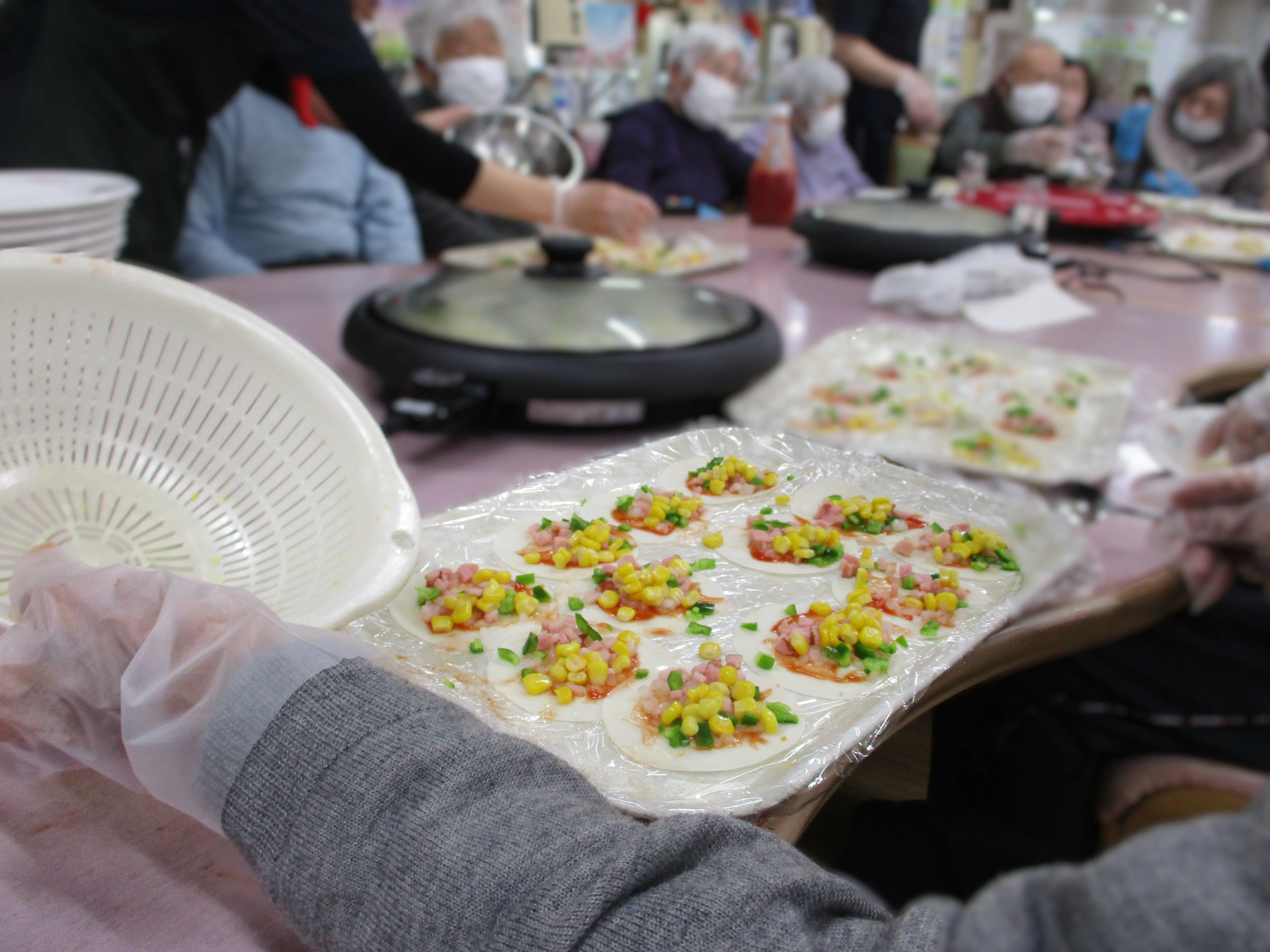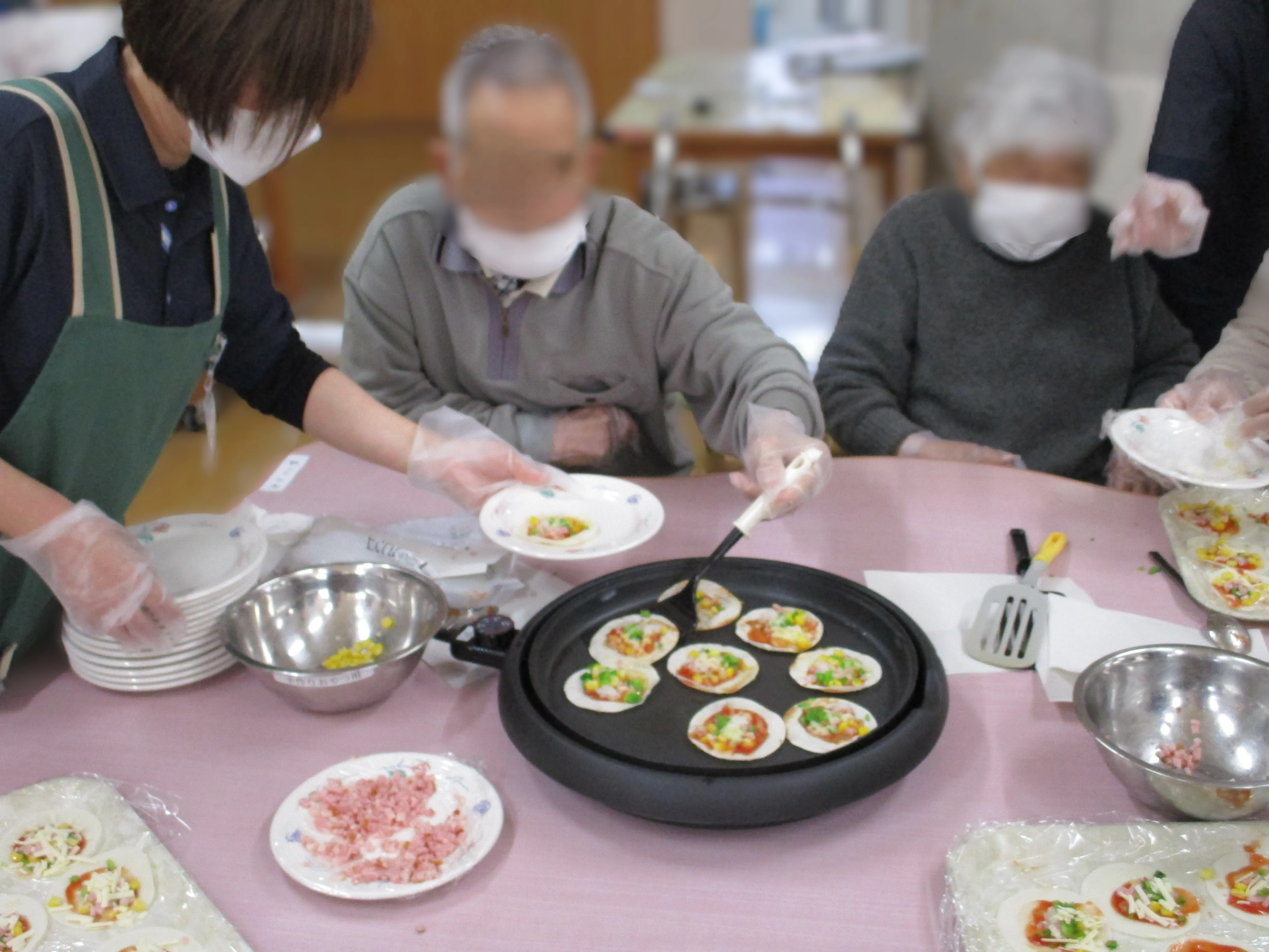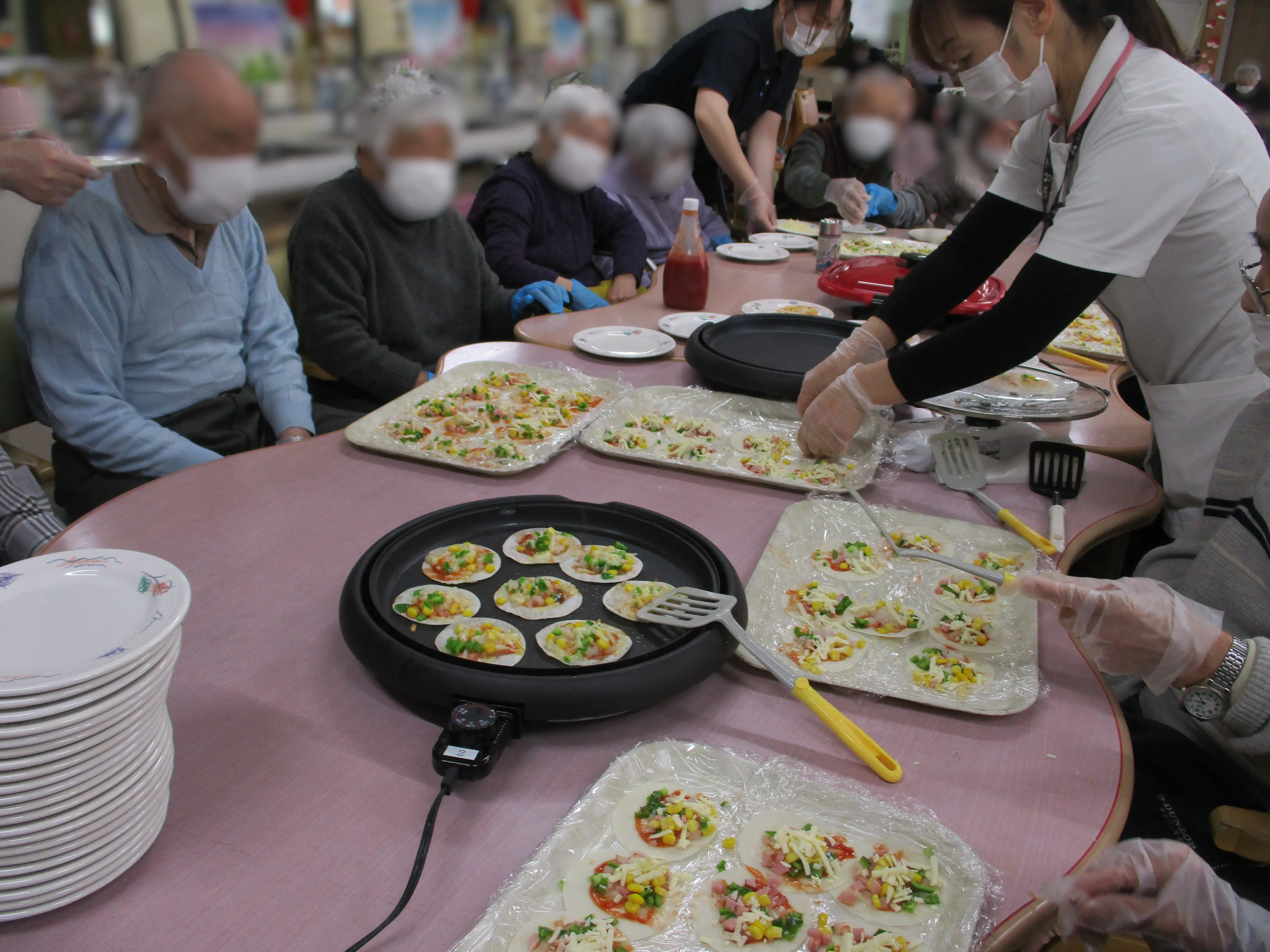 ホットプレートにて焼き上げて出来上がり!簡単にできてとても美味しくてご利用者様からも好評です!