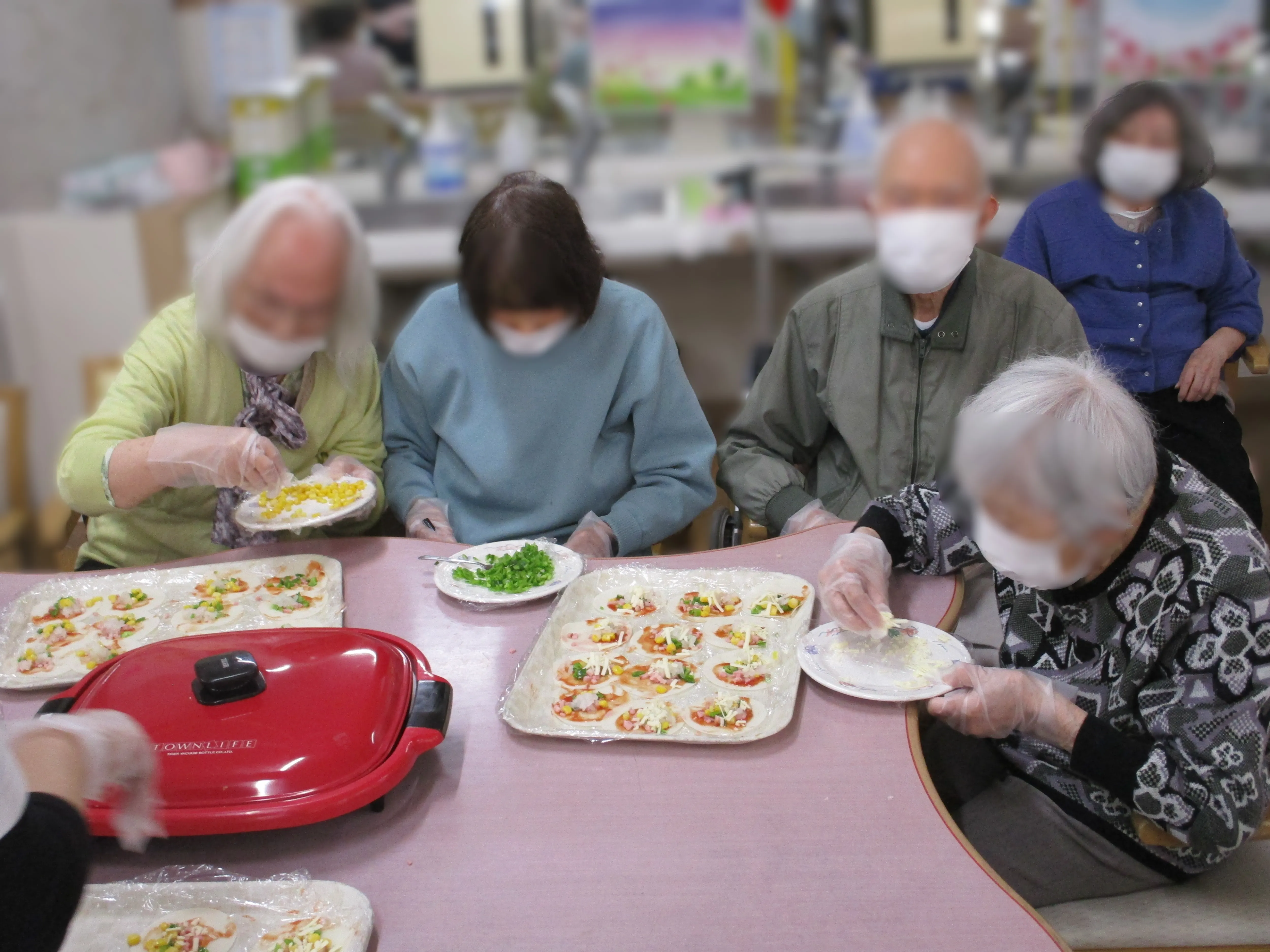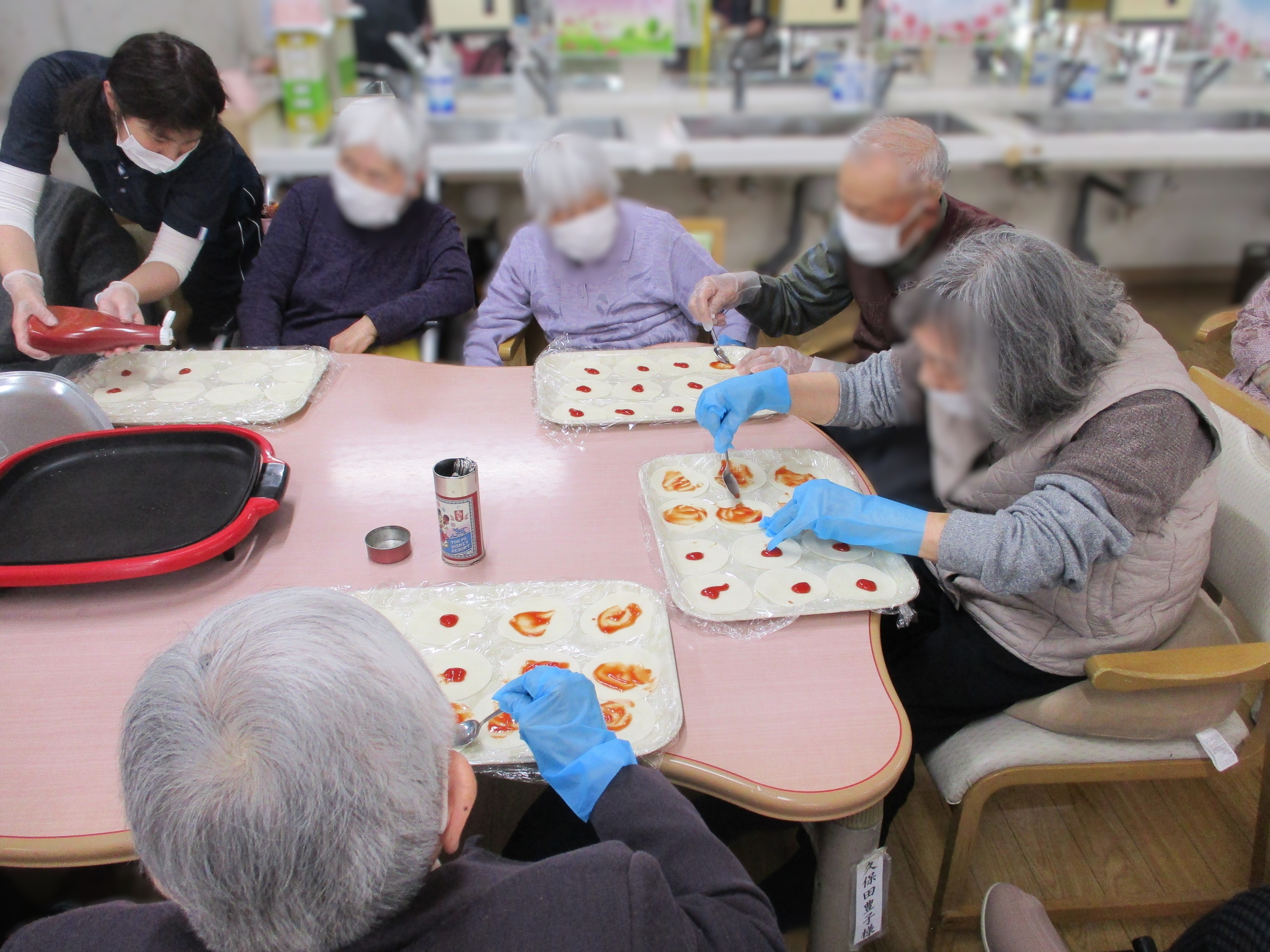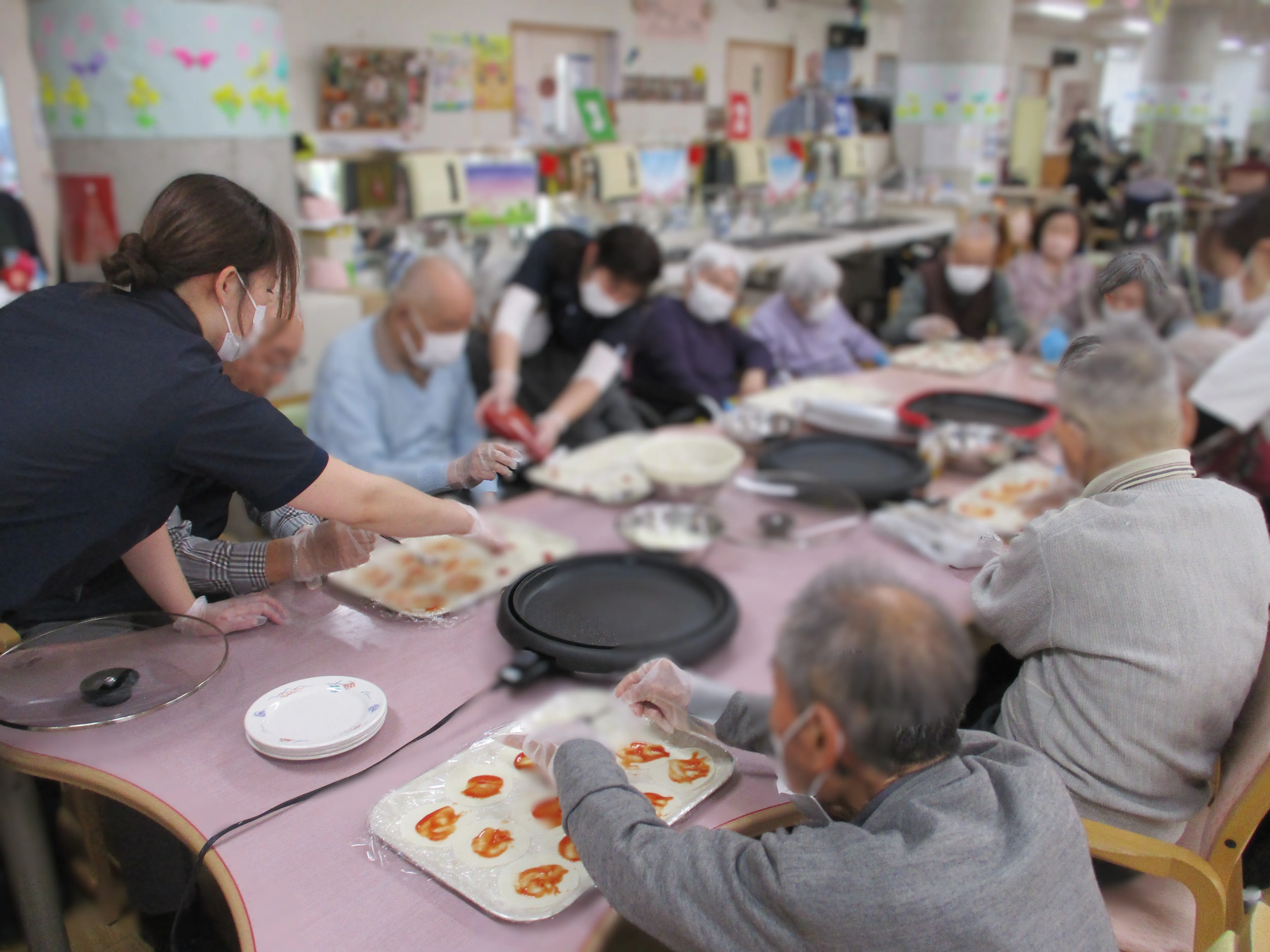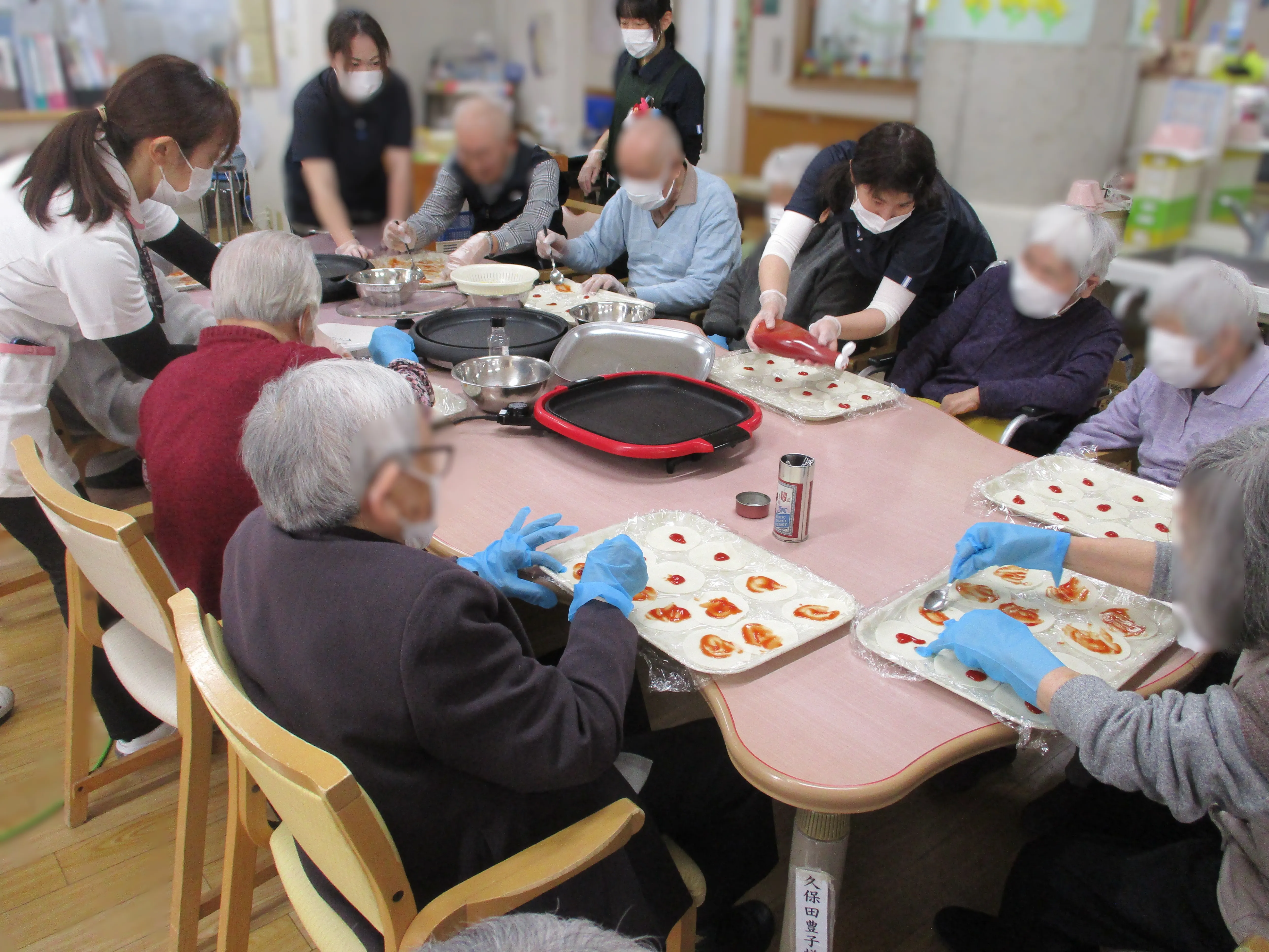 ホットプレートにて焼き上げて出来上がり!簡単にできてとても美味しくてご利用者様からも好評です!