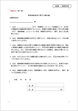 - 事業所のMCS管理者は、MCSを利用する職員各自に会則及び運用ポリシー遵守する旨の誓約書(「様式9」)に記入してもらい、管理者が保管してください。